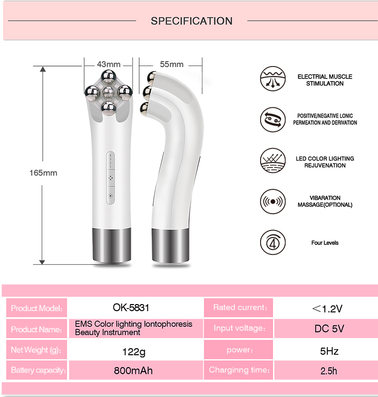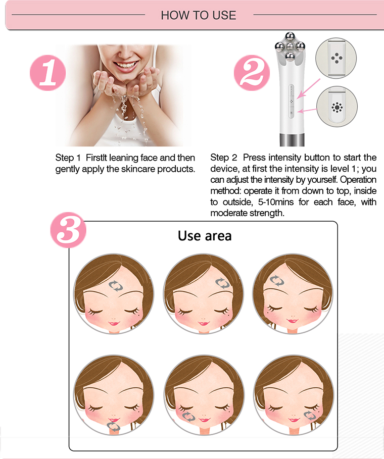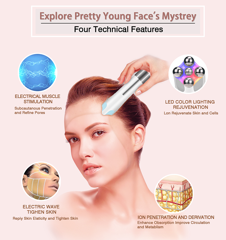 AUKŠTO DAŽNČIO VEIDO MASAŽAS – taikant valymo, įsiskverbimo, pakėlimo ir akių priežiūros režimus, pasižymintis aukšto dažnio vibracijos pojūčiu, padedančiu stimuliuoti ląstelių gyvybingumą ir skatinti kraujotaką. Taigi tai iš tikrųjų taip pat yra veido masažuoklis.