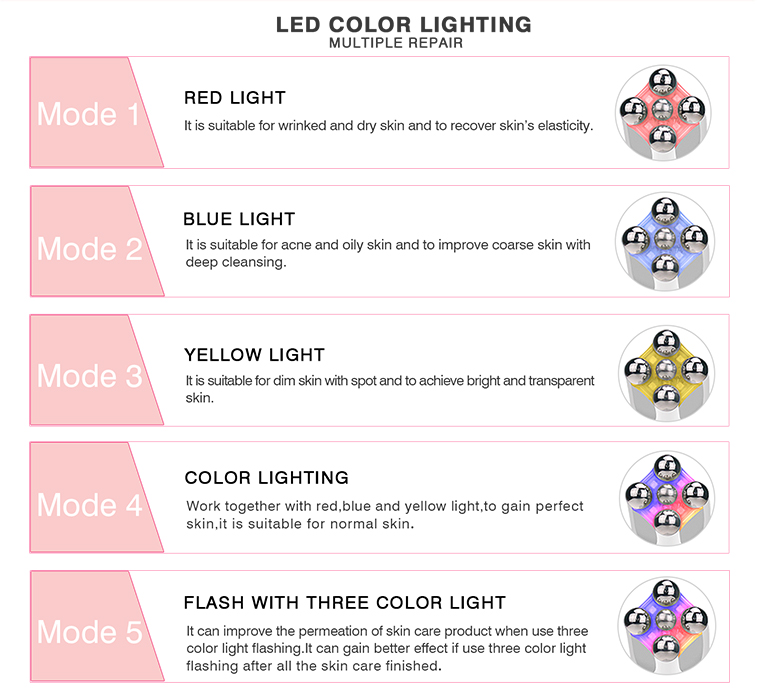 KOKIA NAUDA? -- Grožio mašina yra daugiafunkcinis senėjimą stabdantis prietaisas, apimantis radijo dažnio (RF) technologiją su raudonos/mėlynos šviesos terapija, EMS, siekiant sumažinti linijas ir raukšles, pagerinti odos įsiskverbimą ir sugerties gebėjimus ir kt.