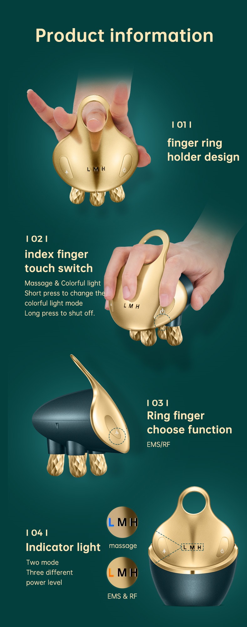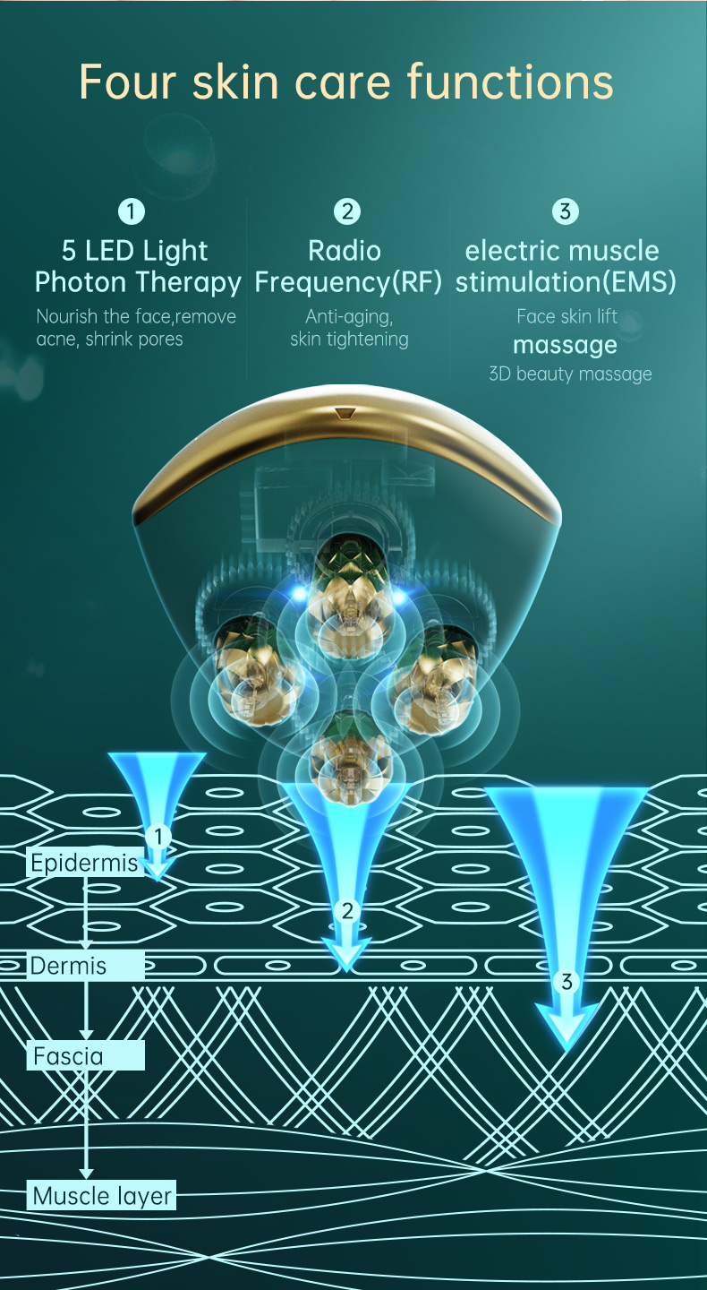 2. Masažas+EMS+RF daugiafunkcis, 3 greičiai ir intensyvumas reguliuojamas