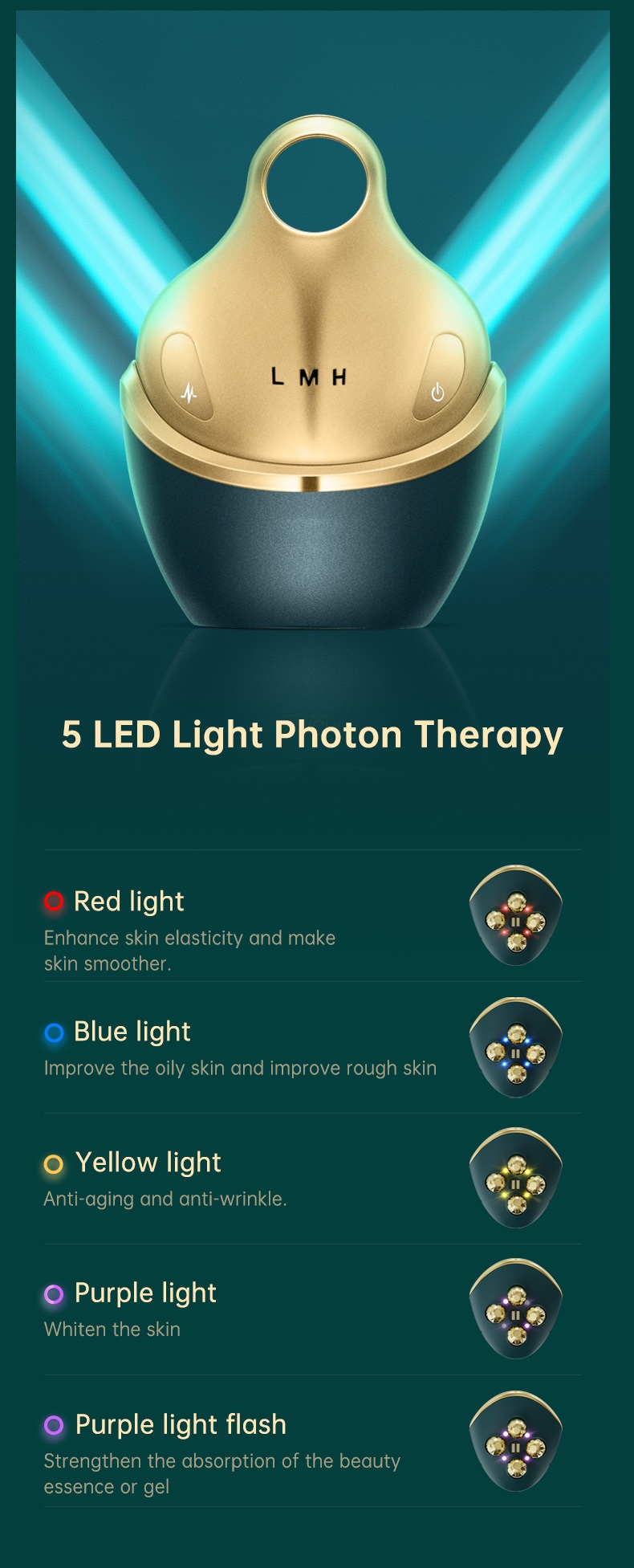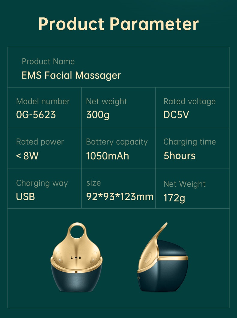 AUKŠTO DAŽNČIO VEIDO MASAŽAS – taikant valymo, įsiskverbimo, pakėlimo ir akių priežiūros režimus, pasižymintis aukšto dažnio vibracijos pojūčiu, padedančiu stimuliuoti ląstelių gyvybingumą ir skatinti kraujotaką. Taigi tai iš tikrųjų taip pat yra veido masažuoklis.